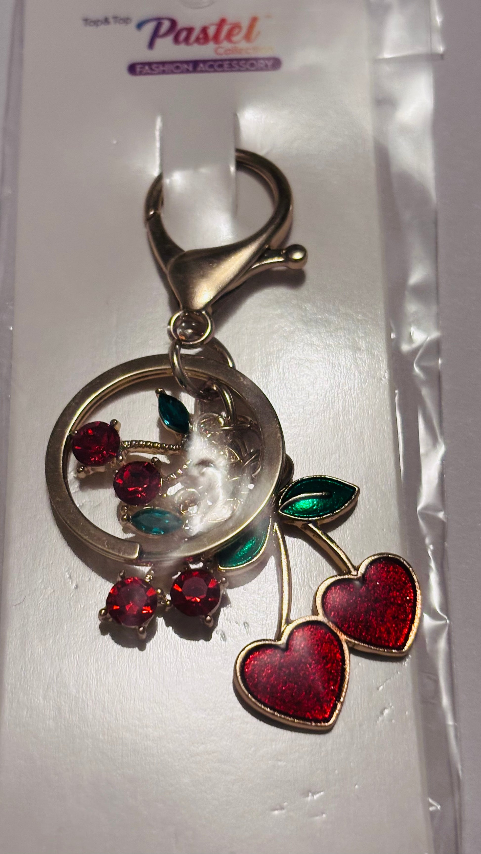 Introducing our cherries and hearts keychain! Add some fruity fun to your keys or purse with these delightful charms in gold or silver. Show off your playful side with this quirky accessory. Perfect for a pop of color and a touch of humor. Limited quantities available!